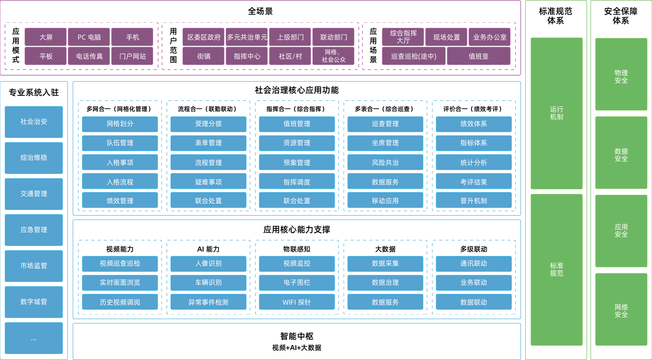 dcbox小金库官网社会基层治理综合应用解决方案,以“综合治理云平台深化应用建设”为抓手,构建以区综合指挥中心、街道综合指挥分中心为联治中枢,以社区、全科网格为共治单元的基层治理新模式,实现新旧基层治理模式转变和改革创新,加快推动基层社会治理体系与能力现代化。